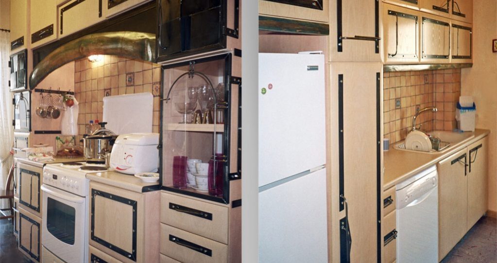 Project: Διαμόρφωση κουζίνας Location: Νέα Σμύρνη, Αττική, Ελλάδα Area: 65μ2 Date: 2006 Scope: Σχεδιασμός και κατασκευή επίπλων κουζίνας, διακόσμηση τζακιού, μελέτη και κατασκευή φωτιστικών