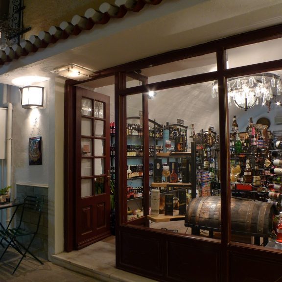 Ο χώρος της βιτρίνας, τα σταντ προώθησης, το ταμείο και ένα μπαρ για την παρουσίαση και την δοκιμή γεύσεων μελετήθηκαν και κατασκευάστηκαν προσεχτικά από την ομάδα μας. Σκοπός μας ήταν η λειτουργικότητα και η μέγιστη δυνατή προώθηση της επιχείρησης. Επίσης εκτός από τους πάγκους εξυπηρέτησης, οι ραφιέρες, τα σκαμπό και τα φωτιστικά σώματα κατασκευάστηκαν ειδικά για το κατάστημα. Οι πάγκοι επενδύονται με μεγάλα ακατέργαστα κομμάτια κορμού και οι ραφιέρες είναι κατά κύριο λόγο κατασκευασμένες από μασίφ ξύλο.