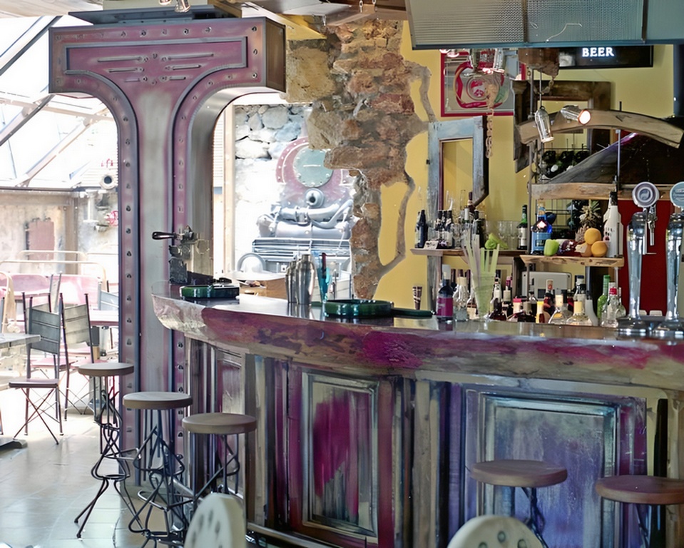 CBAR 36 μασιφ ξυλινο με παλιους νταμπλαδες πάγκος φυσικός κορμός